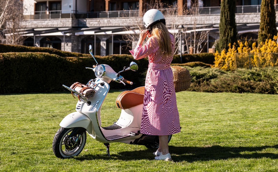 Our brand-new E-Vespas invite guests to experience La Dolce Vita Alpina. In chic white with caramel leather seats, these electric scooters are an equally elegant and fun ride. Set out in style to discover the area’s hidden gems: country roads meandering through undulating valleys and fields abloom with yellow buttercups and pink alpenroses. The cherry on top? Our E-Vespas have wicker picnic baskets that can be filled with local delicacies for memorable, al fresco meals.