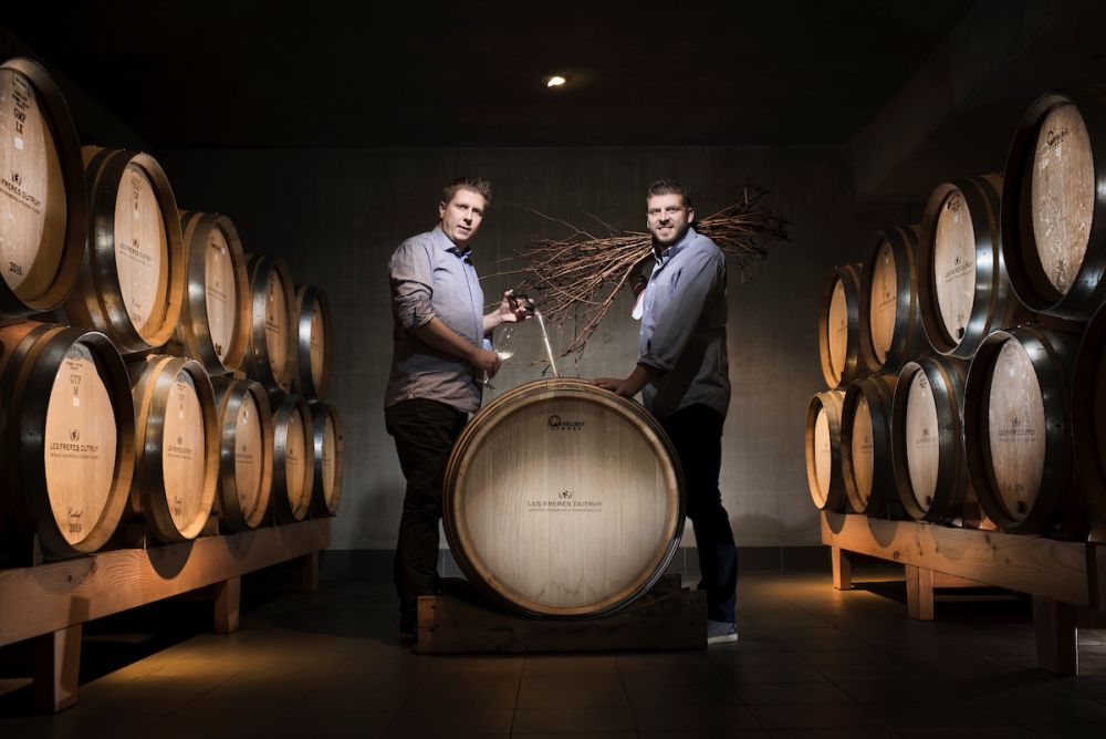 When a family has been part of the wine industry since 1917, it might be hard for the next generation not to follow suit. Those roots run deep, especially when your great-grandfather opened the first grapevine nursery in Switzerland. “There is a virus in my family,” smiles Julien Dutruy, who co-owns Les Frères Dutruy winery with his brother, Christian. Growing up, work and family were intertwined, with family meals filled with conversations ranging from assemblages to weather reports. When the brothers began working at 15, their father, Jean-Jacques, sent them to the famed terraced vineyards of Lavaux. They toiled 50 hours a week for a hands-on education. “It was hard… almost like military service,” shares Julien. Eager to gain experience worldwide, Christian worked in California and South Africa while Julien went to Bordeaux, Bourgogne, and New Zealand. “I was immersed in Old World oenology and my brother in the free spirit of the New World,” says Julien.