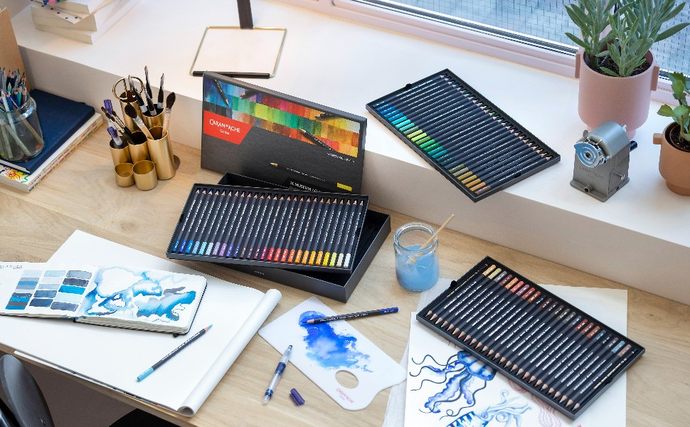 Based in Geneva since 1915, Caran d'Ache, a family firm with over 300 employees, constantly reinvents its pens and pencils to inspire artists, poets and writers of all ages and all levels. It takes 50 hours of painstaking work to produce a single pencil, available in 400 colours, with certified Swiss Wood introduced in 2018.