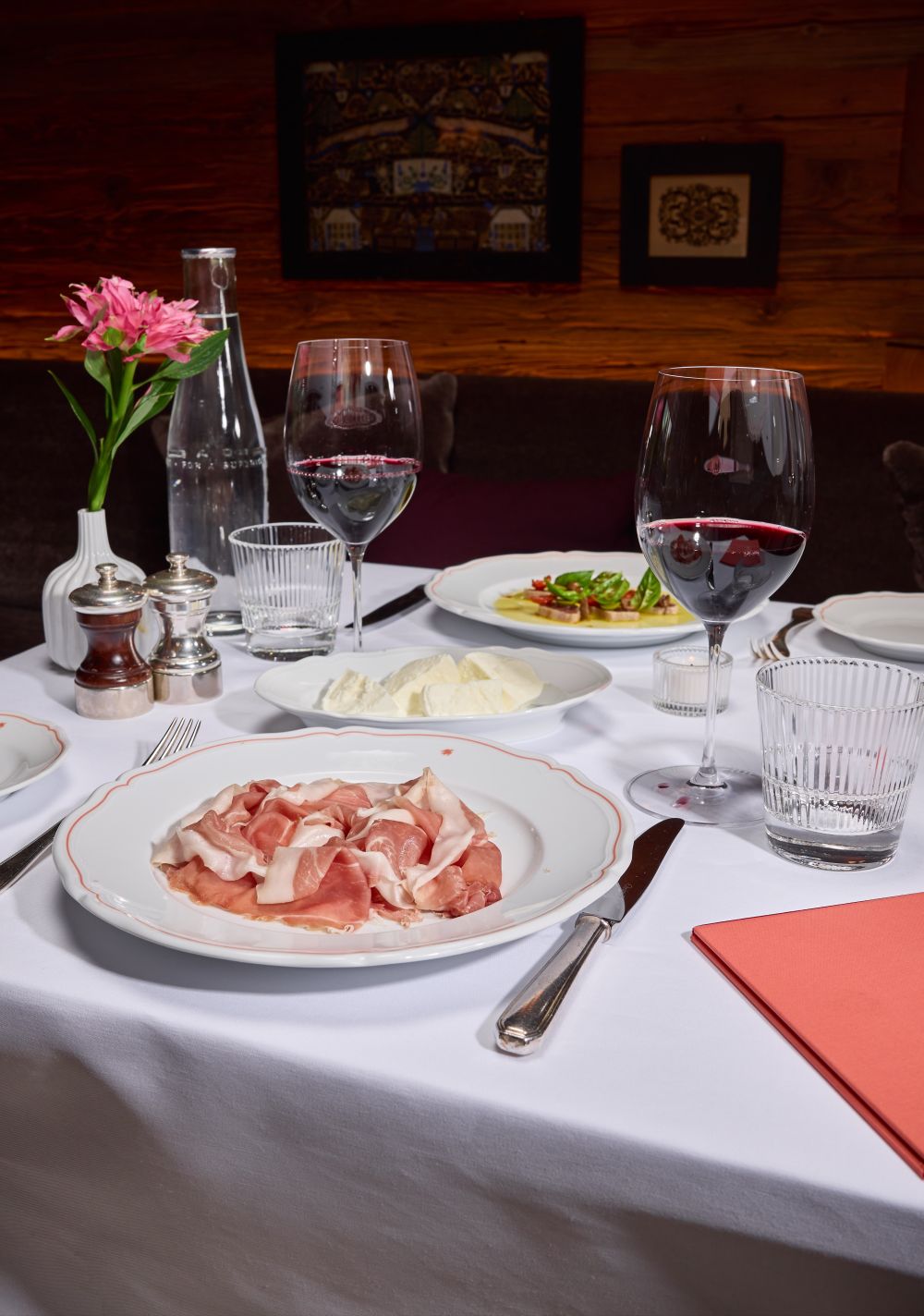 Guests savour vitello tonnato, twirl tagliatelle in fresh tomato sauce, and raise their glasses with classic Italian cocktails. The scene is straight out of Italy. Yet, if you zoom out, the chalet-style antique wooden rafters in the dining room’s ceiling are pure Switzerland.